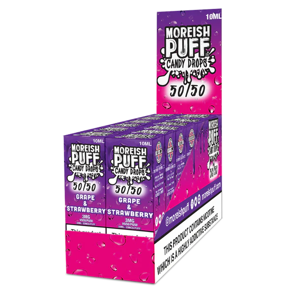 Grape & Strawberry Candy Drops is available in a 10ml 50/50 e-liquid with 3mg, 6mg, 12mg and 18mg of nicotine.